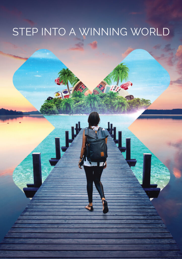 This double-sided leaflet beckoned the player into a captivating world of entertainment. We added a special finish to the X on the front, complementing the matt finish on the rest of the page, creating an eye-catching effect that made the area pop out to the viewer.